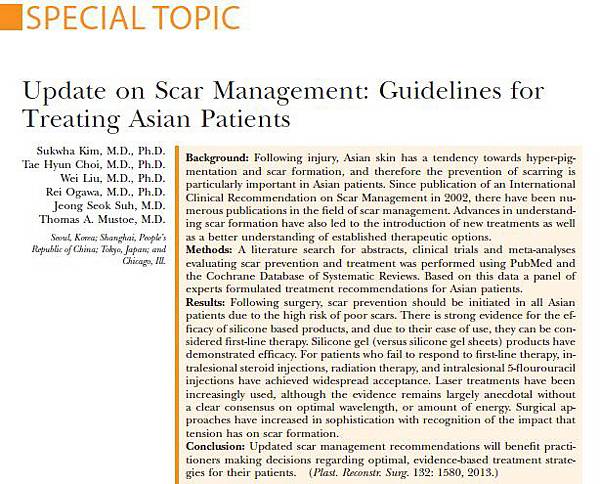 最近念了兩篇論文都是從整形外科龍頭雜誌PRS Plastic and Reconstruction Surgery 相關雜誌選出可以做為近期疤痕治療參考~